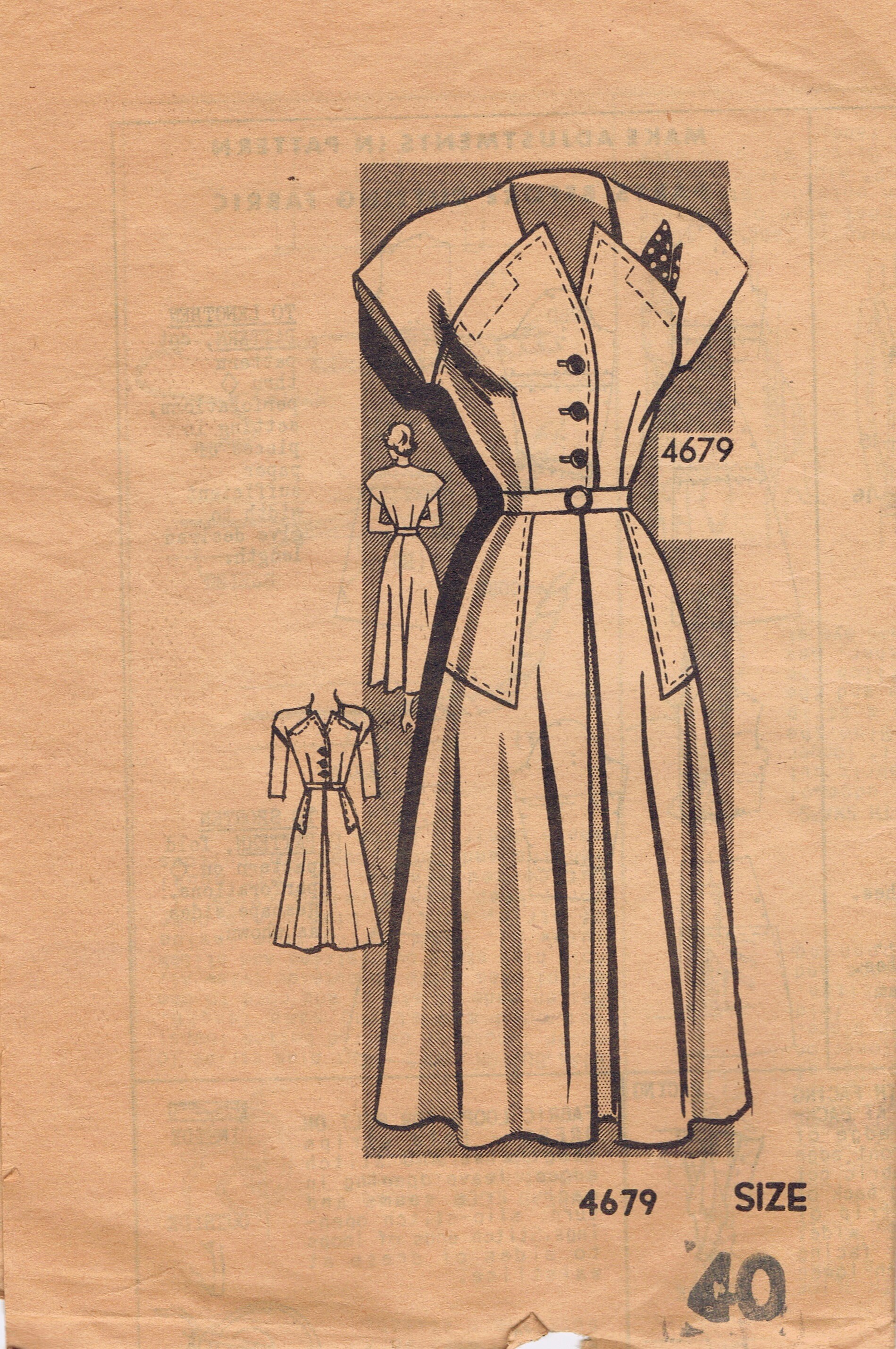 Vintage 1940s Anne Adams Pattern 4679 Day Dress Size 40 34 43 Etsy